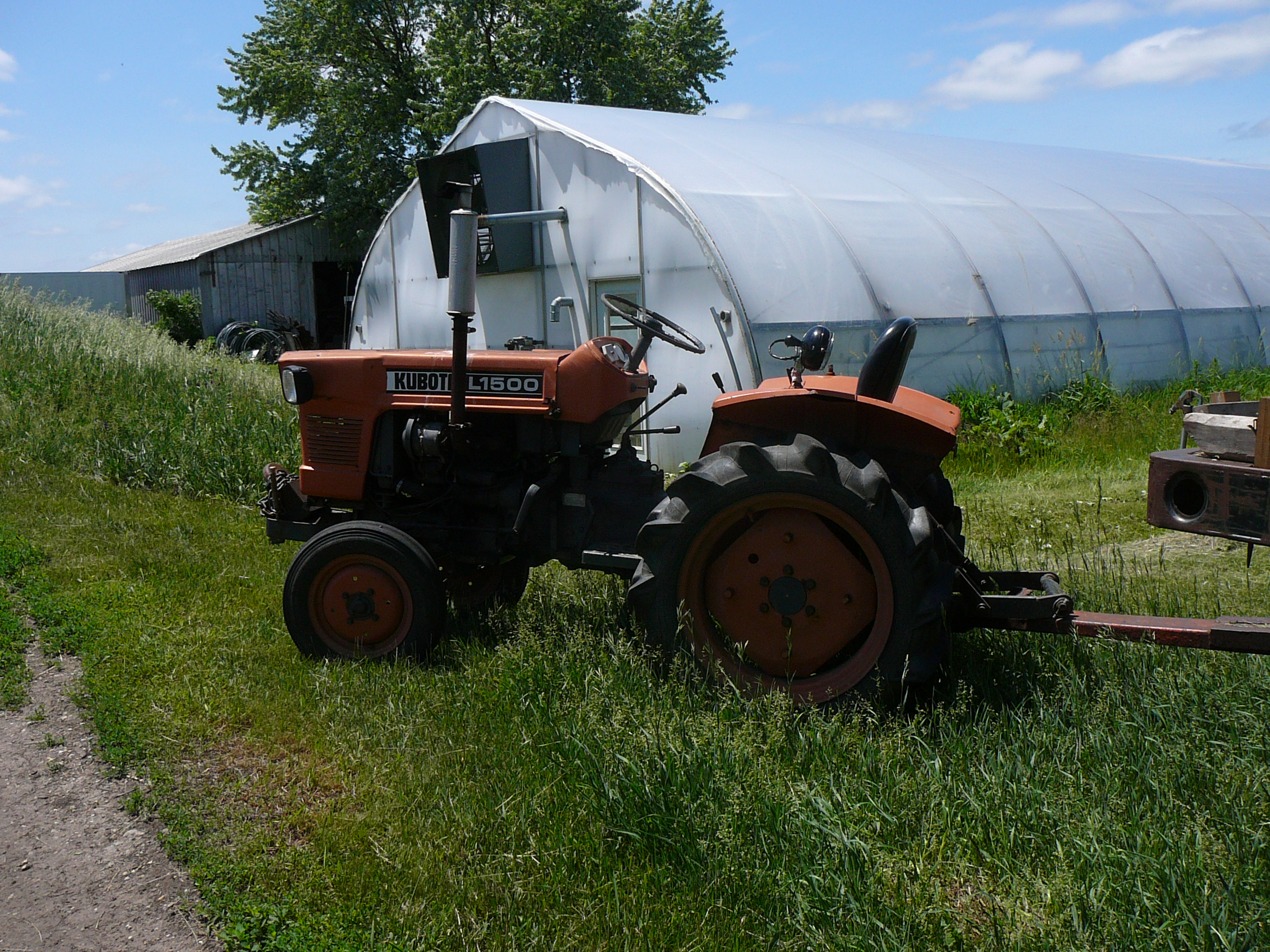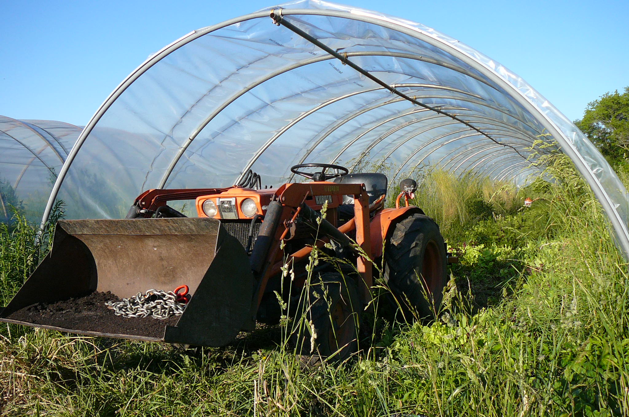 Stores like these make me very grateful for the machines that we have. I’d like to introduce you to our tractors (pictured above and at right). They do a lot of work for us, including tilling and shaping the fields, pulling manure spreaders and wagons, scooping feed, sand, and compost, and mowing and killing weeds. You’re not seeing double – we have two very similar Kubotas . Nick did this on purpose, so that we would be able to run things like our tiller and our mower on either machine. This way, we can keep functioning in the event that one tractor is out of commission for a while, without having to dust off the the old hand-held plow:)